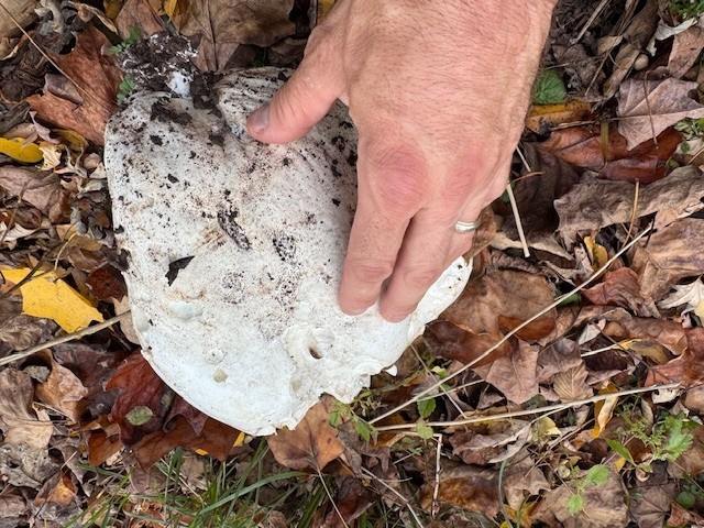It’s been a while since I found a big one like this. Until a few days ago, things were pretty dry from the lack of rain. After that first measurable rainfall, this big guy popped up–a giant puffball. They are edible when white and young inside. Stay away from if they are discolored. They are usually pretty easy to identify as well.