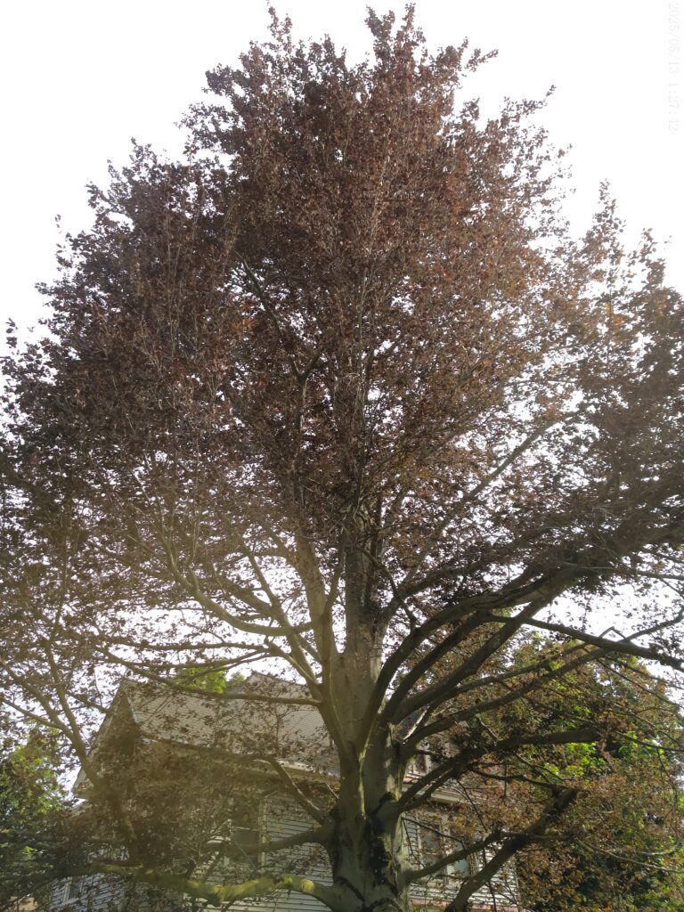 As some of you may already know, beech leaf disease is making its way through the Catskills, finishing off trees that have already been suffering from beech bark disease. Beech leaf disease attacks both American beech and copper or European beech; This is the one w/ purplish leaves. I saw this beautiful copper beech in Tillson, Ulster County that looked like it was being attacked by beech leaf disease. Currently there is no known definitive treatment yet in New York State. Beech leaf disease can be identified by banding upon the leaves. Also, it seems to impact the tree in the lower canopy before moving throughout the rest of the canopy.